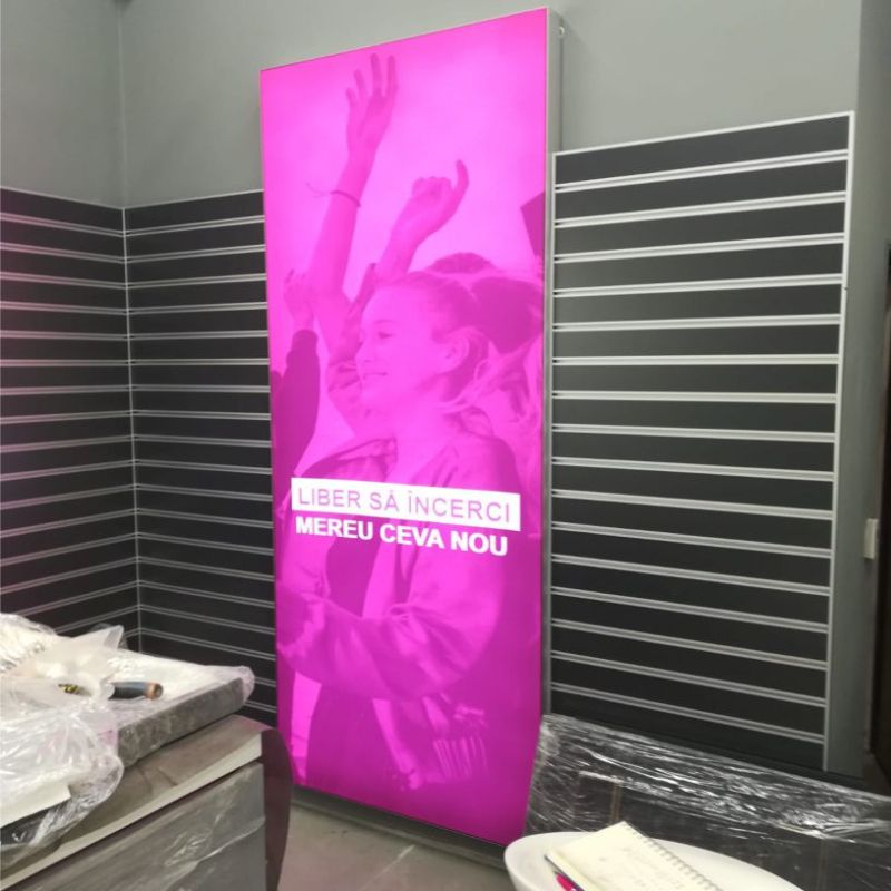 Description:The Frameless Fabric Lightbox is preferred for decorating offices, shopping centers, exhibition stands, conferences, museums, hotels, restaurants, public spaces, etc. The printed fabric draws attention to the graphics with backlighting, strong colors, and the large size of the display and can be easily and periodically changed or exchanged with new images or graphics of interest.
