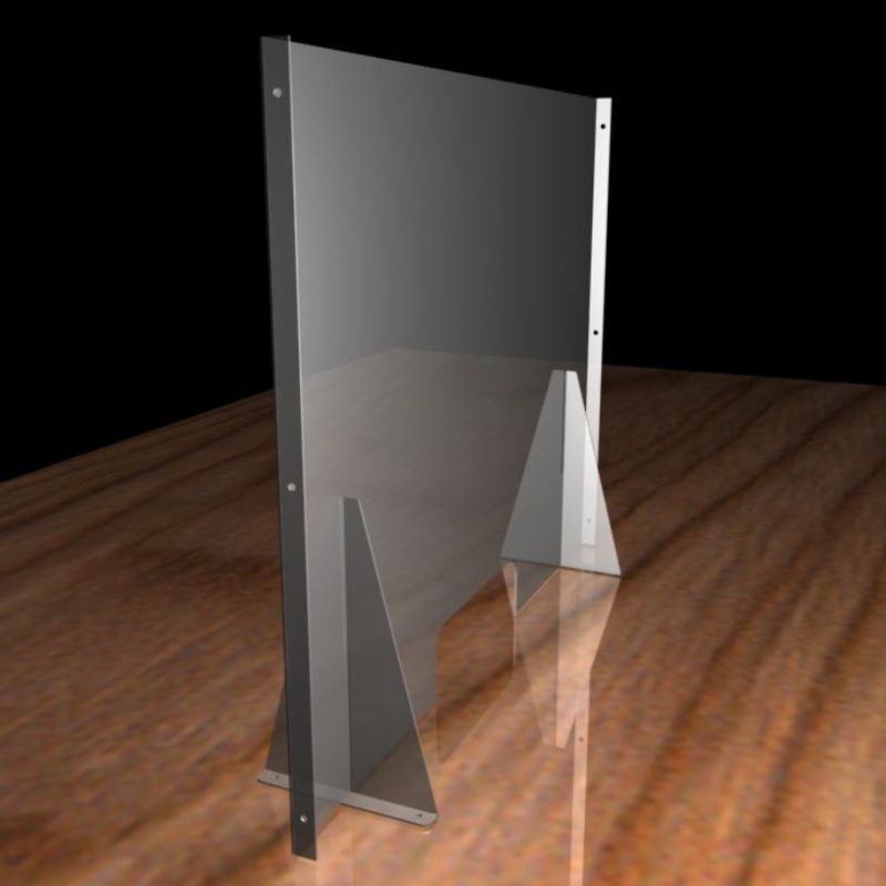 Acrylic Desk Divider is independent and/or does not join with other dividers at 90 degrees for stability, then each unit is provided with triangular support legs. Each divider consists of a main panel made on the ordered size, which is provided with 2 left / right sides of 25mm width, for reinforcement, which also allows joining with other similar panels, using the M5 screws and the mounting holes. Also, each separator panel is provided with 2 supporting legs (22x35cm), which are each provided with a 25mm base that has a transparent double-sided adhesive tape and 2 holes (for optional fastening with screws). The Acrylic Desk Dividers are very easy to assemble by inserting the main panel into the slots of the support legs. For fixing on the desk you can use any of the 3 options: using it as it is because it is stable enough, sticking it with the included double-adhesive tape, or fixing it with 2 screws for each of the 2 bases