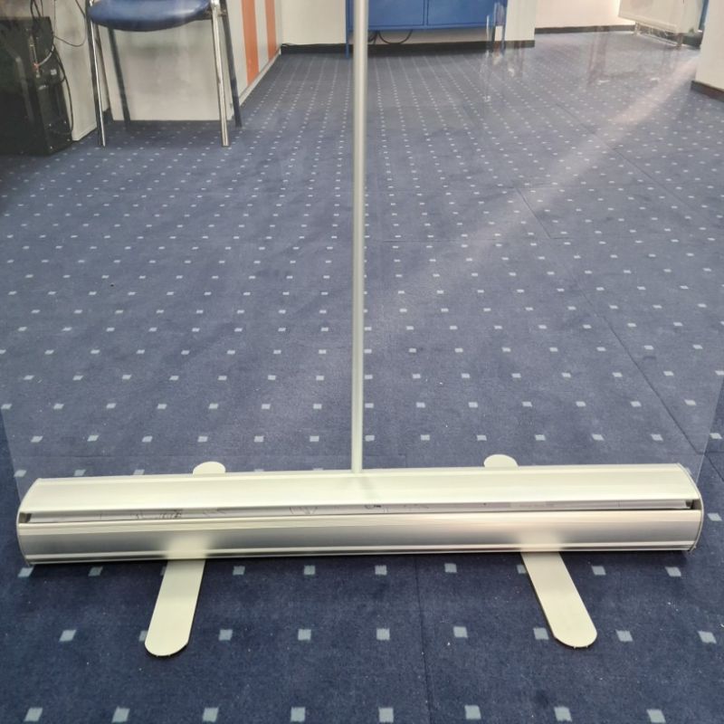 The RollUp Partition is used indoor and it is easy to assemble in a few minutes: unfold feet, position on the floor, unroll the transparent panel by pulling the upper metallic profile, and fixing it in the supporting rod. Detailed assembly instructions are available in the product packaging. RollUp Banner Office Partition Panel is a stable and reliable system consisting of an aluminum box (containing pre-tensioned transparent material) provided with two folding support legs, an aluminum rod (for the length of 85 and 100 cm) / 2 rods (for the length of 120 and 150 cm) for fixing the transparent panel in the unfolded position, and a textile bag for protection and transport.