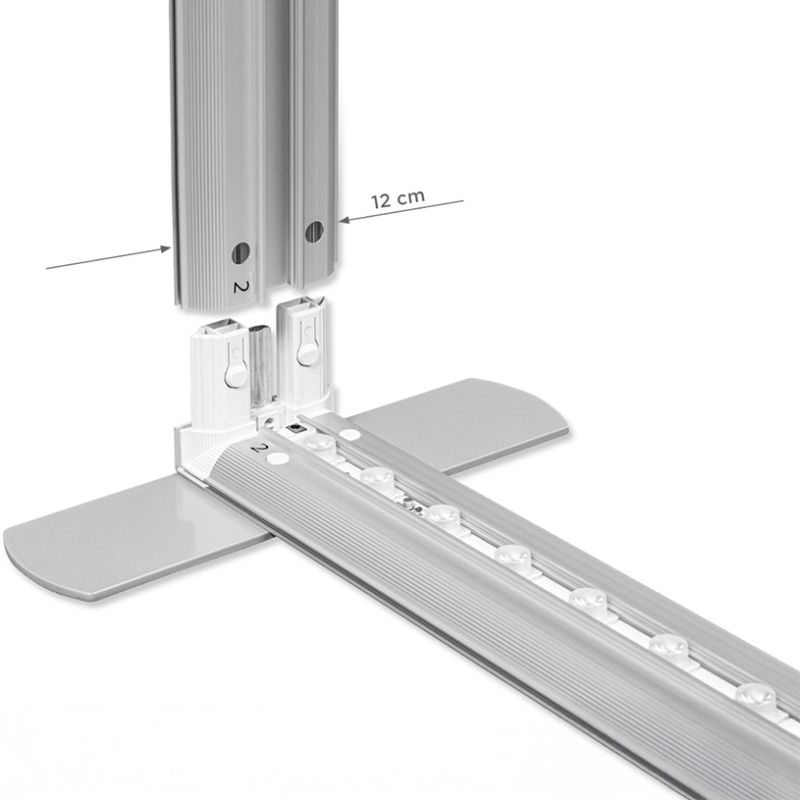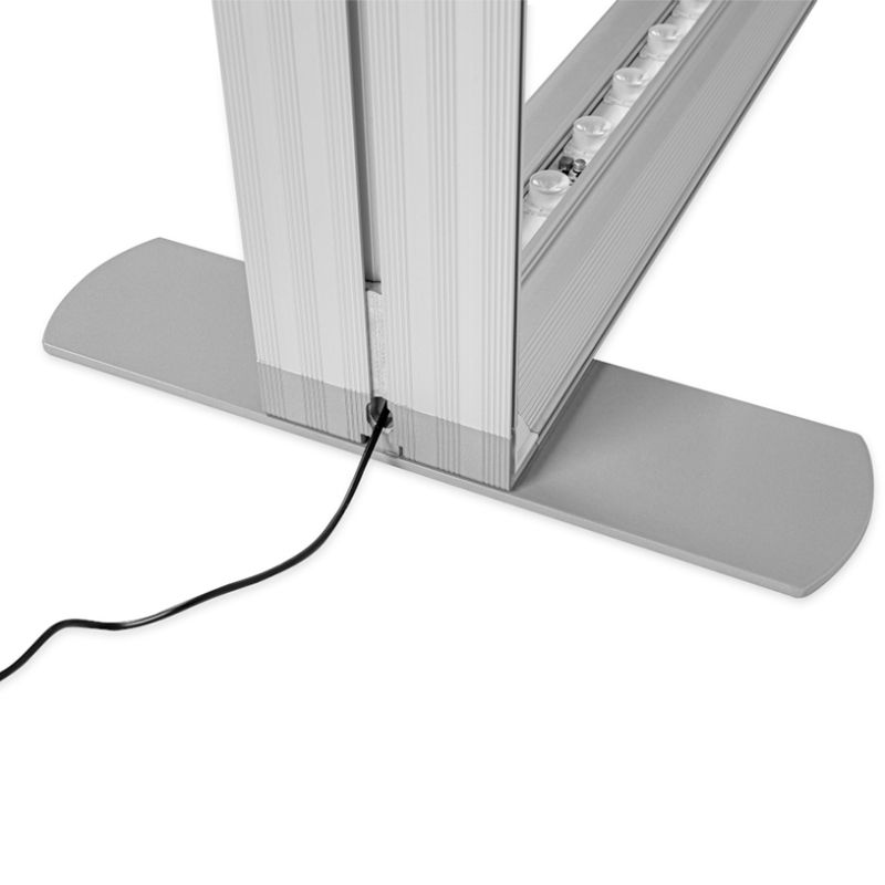 Advantages: The dual-sided LED illumination significantly enhances brand visibility in dimly lit event halls. Furthermore, the textile graphics are not only interchangeable for easy rebranding but are also washable at 40 degrees Celsius, ensuring the display remains pristine and professional over multiple uses. |