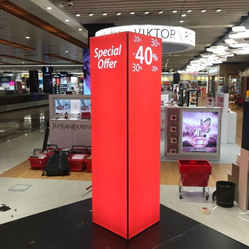 The Light Frameless Cube/Parallelepiped provides a strong visual presence with a sleek aluminium profile that keeps the focus on the printed graphics — ideal for branding, promotions, events, or retail displays.