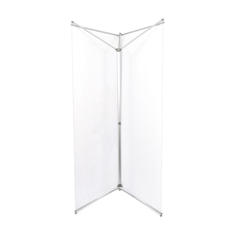 The Triple Banner Display 90, also known as a triple display or triple screen, is a three-sided portable system designed for displaying three large 90x210cm prints. Its structure is made of three aluminum bars at the top and three at the bottom, which are united around a central axis. This display is very suitable for open spaces, allowing maximum visibility. The graphic is printed at a 2400 dpi resolution, featuring vivid colors with professional, environmentally friendly inks that are odorless, solvent-free, and moisture-resistant. The system can utilize graphics printed on either printed frontlit or printed textile material. The display is provided with a textile bag for transport. In the "Instructions" tab you will find Graphic specifications. |