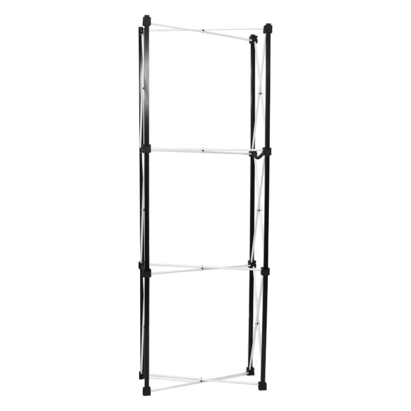 When assembled, PopUp 1x3 Straight has a straight front and a length of 140cm. Pop-up display 4x3 straight consists of a lightweight, extensible, and stable metallic structure spider type and the magnetic strips attached to the graphic that help fitting it to the structure. The system includes an extensible structure configured as a matrix on 1 column and 3 rows and 12 metallic rods.