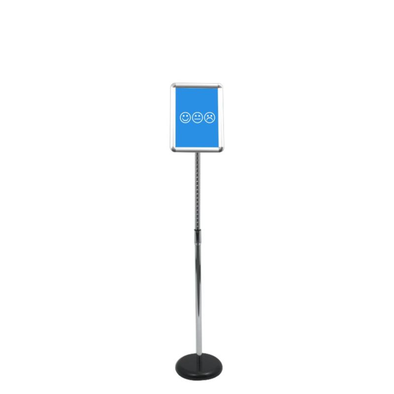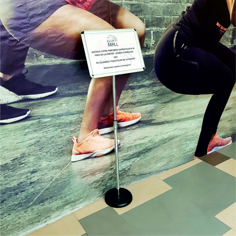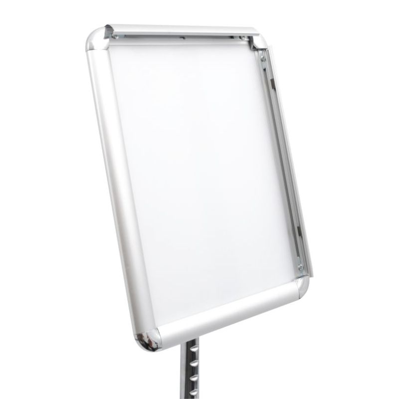 | Advantages: The angle of inclination of the frame and its orientation (portrait or landscape) can be easily adjusted. The frame's height can be adjusted between 90-145 cm with a button. The posters can be easily changed due to the frame's click system. The mounting is quick and easy, needs very little storage space and it's facile to carry: when dismantled it fits in a small box. |