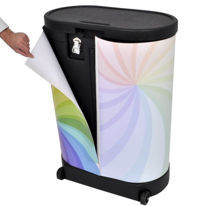 | Package: wrapping: 2 rigid bags with wheels and cardboard / package sizes: 2 x L: 45cm; H: 90cm; W: 45cm (system with graphics) / weight: 48Kg (system with graphics) |