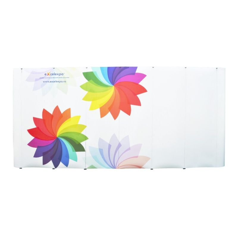 | Description: PopUp Banner Display stands are large portable display systems for indoor with a professional look specially designed for the exhibitions, presentations, conferences, conventions, product launches. When assembled, PopUp 6x3 Straight has a straight front and a length of 510cm. Pop-up display 6x3 straight consists of a lightweight, extensible, and stable metallic structure spider type and the magnetic strips attached to the graphic that help fitting it to the structure. The system includes: 1 extensible structure configured as a matrix on 6 columns and 3 rows, 27 metallic rods, 2 spotlights and 2 wheeled rigid bags for protection and easy transportation. The graphic consists of 8 panels (6 in the center and 2 on the sides) made of 0.4mm PVC customized with printed and laminated self-adhesive vinyl. The graphic is printed at a resolution of 2400 dpi using professional equipment of the latest generation and environmentally friendly inks, odorless and solvent-free. The graphic is covered by a laminated foil for extra protection. In the "Instructions" tab you will find Graphic specifications and Assembly instructions. |