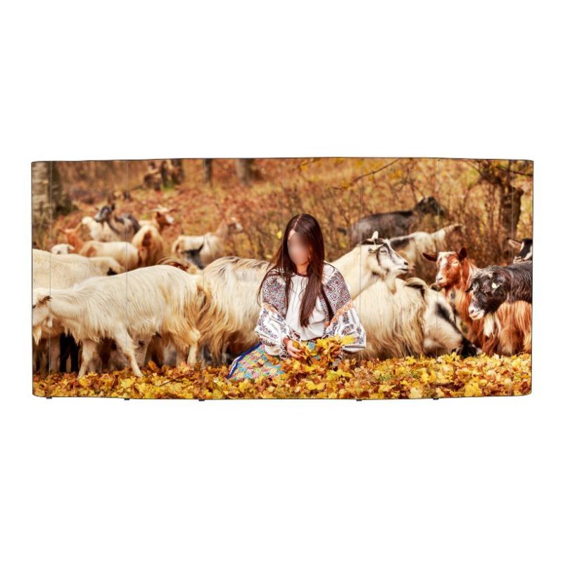 | Graphics: material: printed and laminated self-adhesive vinyl on 0,4mm PVC with magnetic tapes / graphic layout size: L: 585,8cm; H: 230cm |