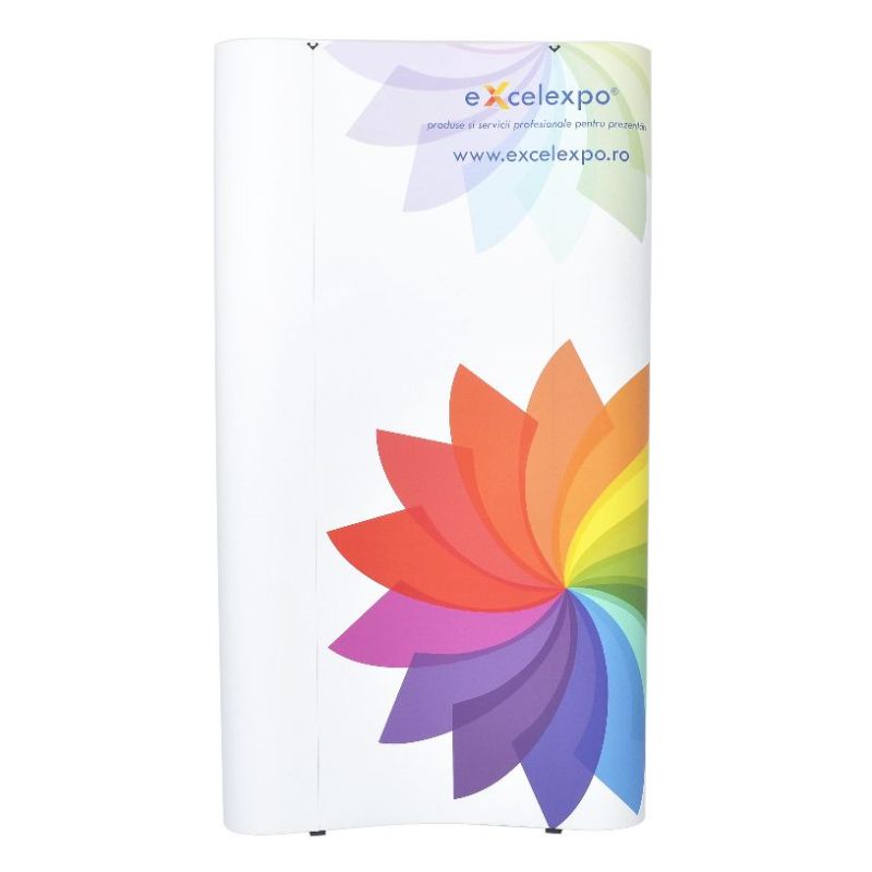 | Advantages: PopUp 1x3 Curved Double-Sided system is a professional system that provides a printed area of 285.5x230cm. It should be exposed in the middle of the presentation are in order to be seen from both sides. The advantages of PopUp Banner Displays are large display area of the graphic, the quick installation without any tools (about 10 minutes), high portability (the disassembled stand fits in two cartoon boxes of 30x90x20cm), and small area required for storage. The graphic can be changed at any time thus achieving a new customized visual. Multiple sets of graphics can be ordered for alternate use. |