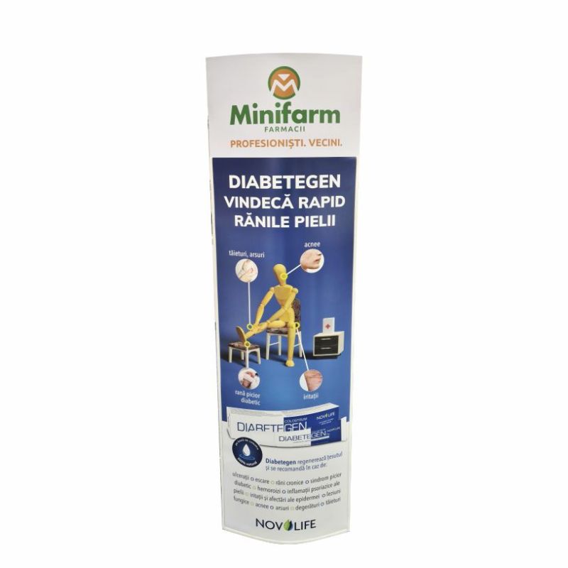 | Avantaje: Totemul pliabil este un display modern, usor si foarte avantajos care permite promovarea produselor la locul vanzarii cu un cost redus. Acesta asigura o dubla suprafata de expunere ceea ce permite vizualizarea standului din ambele directii, fiind foarte util pentru expunerea in calea fluxului de vizitatori. |