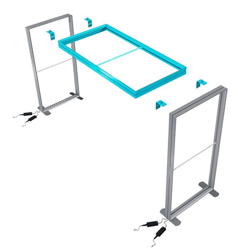 Arcada Luminoasa Textila Frameless, demontabila, dubla-fata, cu printuri incluse, realizata din trei casete Lumix.