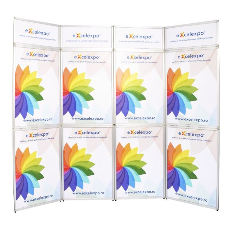 Perete de prezentare tip Flexiframe format din cadre modulare din aluminiu cu dimensiunea (LxH) de 280x230cm.